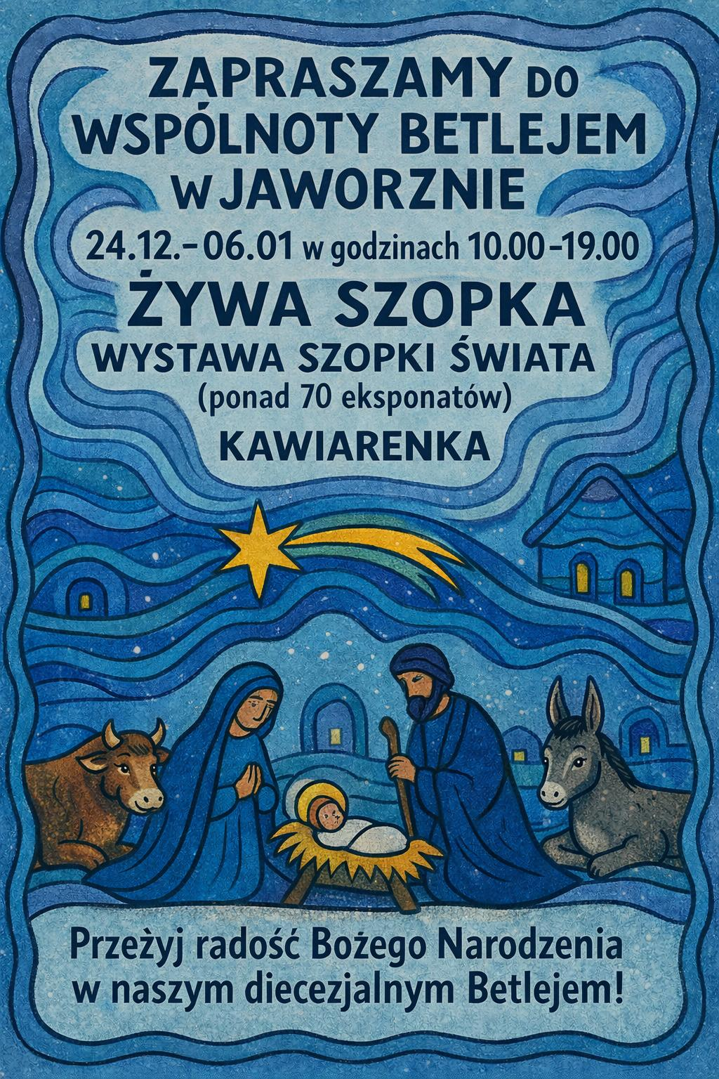 Betlejem w Jaworznie zaprasza! 24 grudnia – 6 stycznia • godz. 10:00–19:00 ul. Długa 16, Jaworzno Boże Narodzenie ma swoje miejsce. Jest nim serce. A czasem – bardzo konkretny adres.Dlatego jak każdego roku otwieramy szeroko drzwi naszego domu i mówimy po prostu: przyjdź. W Betlejem nic nie udajemy. Tu słoma pachnie naprawdę, owce patrzą prosto…